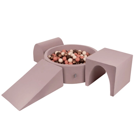 KiddyMoon Spielplatz aus Schaumstoff mit Bällebad und Bällen Hindernisläufen, erikafarben:braun/kupferrot/pastellbeige/lachsfarben, Bällebad (200 Bälle) + Version 2