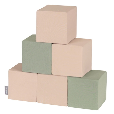KiddyMoon Schaumstoff Würfel für Baby Weiche Blöcke Schaum Spielzeug Montessori-Spielzeug mit Schaum und viel Spaß für Kinder, Blöcke: salbeifarben-beige, 6 Stücke