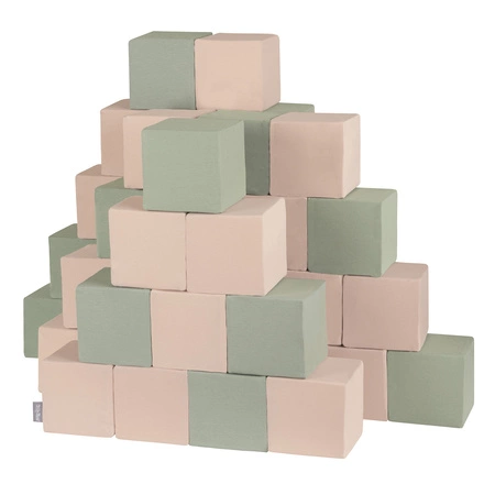 KiddyMoon Schaumstoff Würfel für Baby Weiche Blöcke Schaum Spielzeug Montessori-Spielzeug mit Schaum und viel Spaß für Kinder, Blöcke: salbeifarben-beige, 48 Stücke