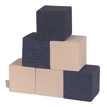 KiddyMoon Schaumstoff Würfel für Baby Weiche Blöcke Schaum Spielzeug Montessori-Spielzeug mit Schaum und viel Spaß für Kinder, Blöcke: dunkelblau-beige, 6 Stücke