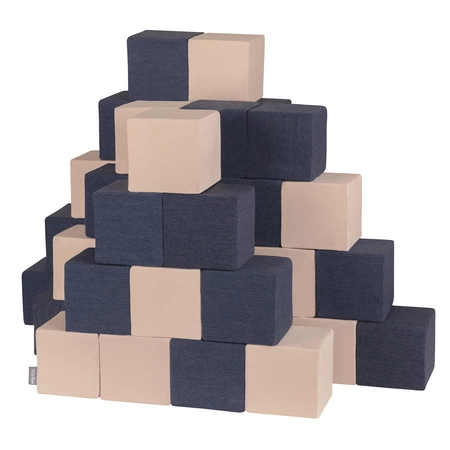 KiddyMoon Schaumstoff Würfel für Baby Weiche Blöcke Schaum Spielzeug Montessori-Spielzeug mit Schaum und viel Spaß für Kinder, Hergestellt in der EU, Blöcke: dunkelblau-beige, 48 Stücke