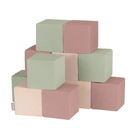 KiddyMoon Schaumstoff Würfel für Baby Weiche Blöcke Schaum Spielzeug Montessori-Spielzeug mit Schaum und viel Spaß für Kinder, Blöcke: erikafarben-beige-salbeifarben, 12 Stücke
