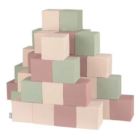 KiddyMoon Schaumstoff Würfel für Baby Weiche Blöcke Schaum Spielzeug Montessori-Spielzeug mit Schaum und viel Spaß für Kinder, Blöcke: erikafarben-beige-salbeifarben, 48 Stücke
