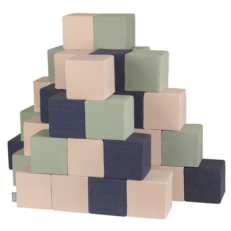 KiddyMoon Schaumstoff Würfel für Baby Weiche Blöcke Schaum Spielzeug Montessori-Spielzeug mit Schaum und viel Spaß für Kinder, Hergestellt in der EU, Blöcke: dunkelblau-beige-salbeifarben, 48 Stücke