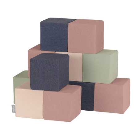 KiddyMoon Schaumstoff Würfel für Baby Weiche Blöcke Schaum Spielzeug Montessori-Spielzeug mit Schaum und viel Spaß für Kinder, Hergestellt in der EU, Blöcke: erikafarben-dunkelblau-beige-salbeifarben, 12 Stücke