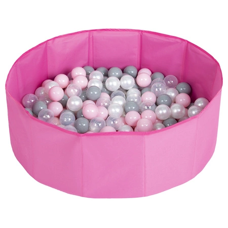 Faltbare Bällebad mit Bälle für Kinder Spielbad, rosa:perle/grau/transparent/puderrosa, 100 Bälle