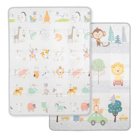 Eine doppelseitige Schaumstoffmatte für Kinder, die die Fantasie anregt und zum Spielen einlädt. Die strukturierte Oberfläche stimuliert die sensorische Integration von Kleinkindern, während die Muster, Formen sowie Zahlen und Buchstaben das Interesse der Kinder wecken. Die Matte kann auf die andere Seite umgedreht werden, um das Interesse des Kindes zu wecken. Das weiche, pastellfarbene Design passt zu jeder Einrichtung.Die Matte ist ideal zum Krabbeln, Laufen und Sitzen lernen, und für Babys, die bereits auf dem Bauch liegen. Dank ihrer Dicke ist sie eine Alternative zu einem Teppich und eine sichere Isolierung gegen Kälte und harte Böden. Sie bietet dem Kind Komfort und schützt es im Falle eines Sturzes. Zu Hause, im Garten oder auf der Terrasse aufgeklappt, schafft sie einen traumhaften Platz zum Spielen und Entspannen. Das faltbare Design und die praktische Verpackung machen es einfach, es zu Freunden oder auf eine Reise mitzunehmen.