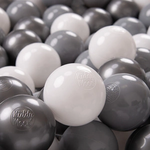 KiddyMoon Kinder Bälle für Bällebad Baby Spielbälle Plastikbälle ∅7cm Made in EU, weiß/grau/helltürkis, 100 Bälle/7cm
