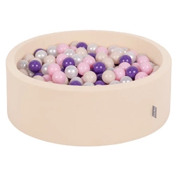 KiddyMoon Bällebad Bällepool mit bunten Bällen ∅ 7Cm für Babys Kinder Rund, beige:pastellbeige/puderrosa/perle/violett, 90x30cm/200 Bälle