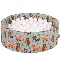 KiddyMoon Rund Bällebad Bällepool ∅ 7Cm Ballgruben Mit Bunten Bällen Für Babys Spielbad Kleinkinder, Hergestellt in der EU, Füchse-grün:orange/grau, 90x30cm/200 Bälle