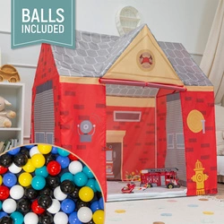 Spielhaus Spielzelt Feuerwehrhaus Faltbares Für Kinder Realistisches Design Langlebige Und Sichere Materialien Leicht Zu Montieren Perfekt Für Drinnen Und Draußen, rot-grau:schwarz/gelb/blau/rot/grün, 100 Bälle