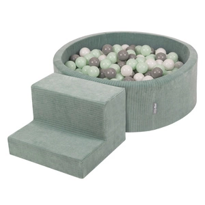 KiddyMoon Spielplatz Aus Schaumstoff Für Kinder mit Bälle Waschbare Bezug, dunkelgrau: pastellblau/pastellgelb/weiß/minze/puderrosa, Bällebad (200 Bälle) + Stüfchen