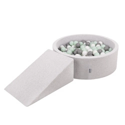 KiddyMoon Spielplatz aus Schaumstoff mit Bällebad und Bällen Hindernisläufen, hellgrau:weiß/grau/minze, Bällebad (100 Bälle) + Zwickel