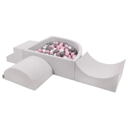 KiddyMoon Spielplatz Schaumstoff mit Viertel Eckig Bällebad Bälle Hindernisläufe, hellgrau:weiß/grau/minze, Bällebad (200 Bälle) + Version 6
