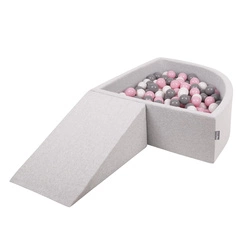KiddyMoon Spielplatz Schaumstoff mit Viertel Eckig Bällebad Bälle Hindernisläufe, hellgrau:grau/weiß/türkis, Bällebad (100 Bälle) + Zwickel