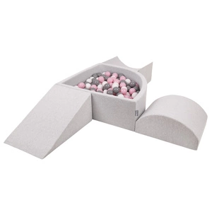 KiddyMoon Spielplatz Schaumstoff mit Viertel Eckig Bällebad Bälle Hindernisläufe, hellgrau:puderrosa/perle/transparent, Bällebad (200 Bälle) + Version 4